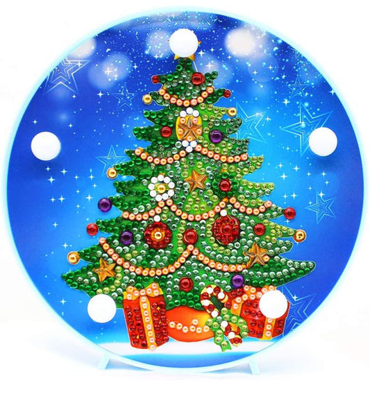 Lampara Redonda Pintura con Diamantes Arbol Navidad