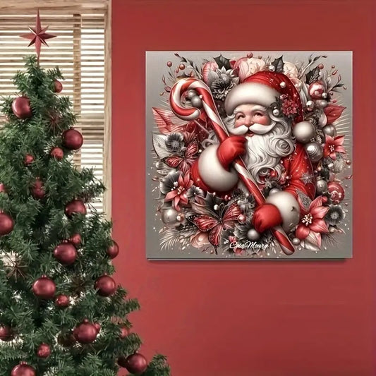 Papa Noel Arbol Navidad Pintura con Diamantes para Niños + Marco 18x18